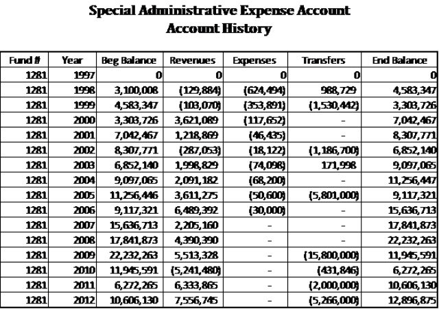 Special Administrative Expense Account $5.0 Million Less Than Stated -