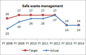 Facilities that treat, store, or dispose of hazardous waste require permits. Permits contain conditions for waste management that ensure protection of human health and the environment. This measure shows the issuance of hazardous waste management permits for all facilities subject to permitting requirements. NOTE: The reduction in the FY 2013 target reflects the termination of three permits (facilities closed; therefore, permits were no longer needed).