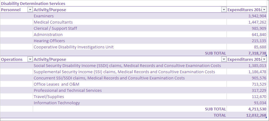 The State Office of Rehabilitiation has one appropriations line item with five individual programs.