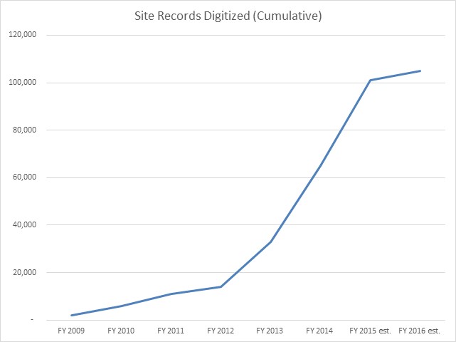 Heritage and Arts Administration uses the following performance measures: site records digitized, digitization per unit cost, and volunteer hours provided through national service contracts.